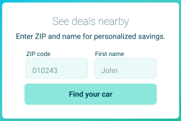 Scenario: The user is trying to view a website to help them buy a car. But, the content can’t load without the user’s location. They need to enter their ZIP code and first name.